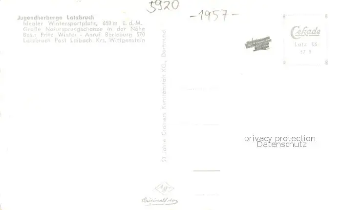 Latzbruch Jugendherberge im Schnee Latzbruch postalisch nicht gelaufen 1957 Erhaltung siehe scans [LiesaD40] LiesID40