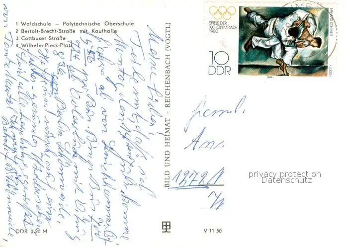 Lauchhammer Ernst Thaelmann Oberschule Bertolt Brecht Strasse mit Kaufhalle Cottbuser Strasse Wilhelm Pieck Platz Lauchhammer postalisch gelaufen nach 1965 Erhaltung siehe scans [WerneD78] WernPID7