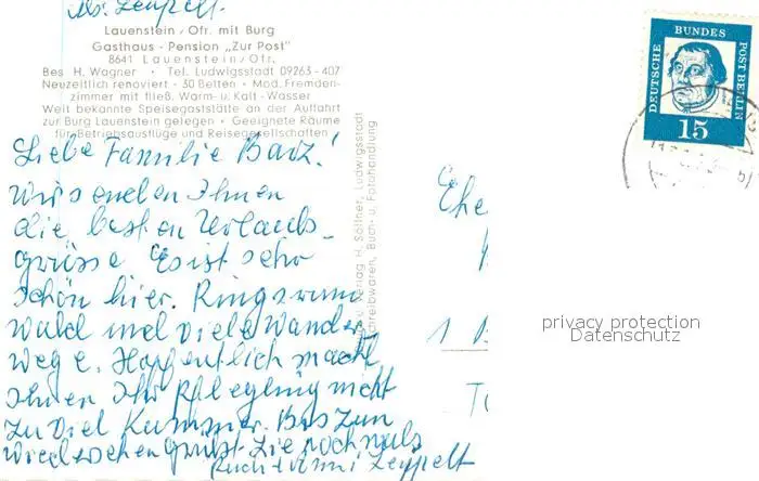 Lauenstein_Oberfranken Gasthaus Pension zur Post mit Burg Lauenstein_Oberfranken postalisch gelaufen 1921-1965 Erhaltung siehe scans [WerneD78] WernPID7
