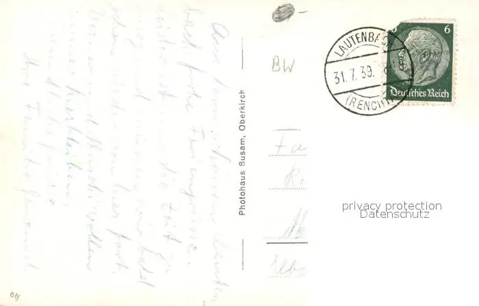 Lautenbach_Renchtal Sohlberghaus Ruestenbach Lautenbach Renchtal postalisch gelaufen 1939 Erhaltung siehe scans [KathaD81] Kathoren