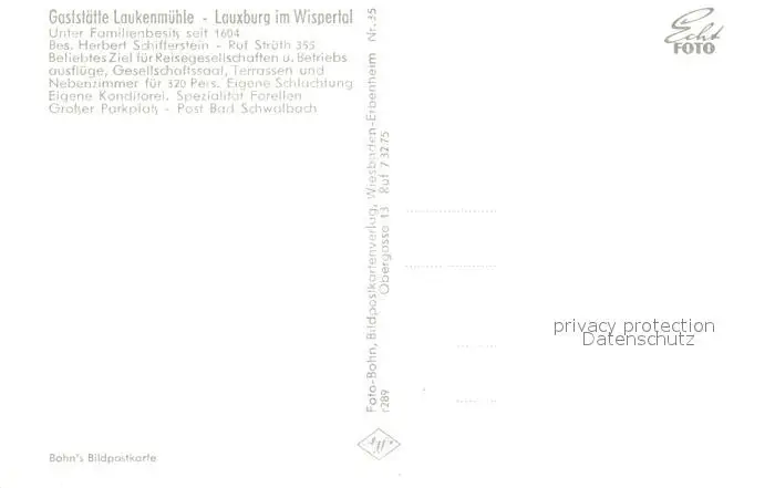 Lauxburg Wispertal Kategorie Alte Ansichtskarten Postkarten bx52603 Lauxburg_Wispertal Gaststaette Laukenmuehle Landschaftspanorama Lauxburg Wispertal postalisch nicht gelaufen Erhaltung siehe scans [FriedD77]