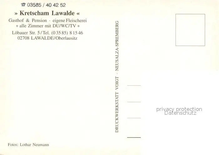 Lawalde Gasthof Pension Kretscham Lawalde Restaurant Fremdenzimmer Festsaal Lawalde postalisch nicht gelaufen nach 1965 Erhaltung siehe scans [FriedD77] Frierer