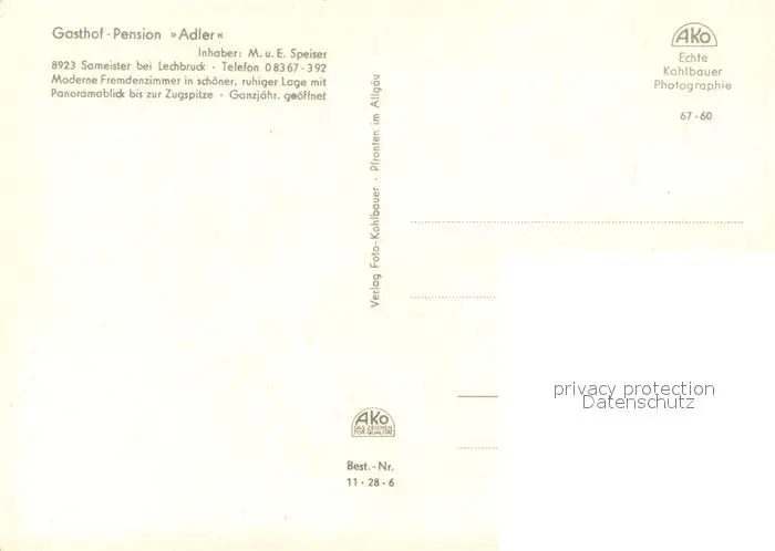 Lechbruck_See Gasthof Pension Adler Gastraum Seepartie Kirche Lechbruck See postalisch nicht gelaufen nach 1965 Erhaltung siehe scans [WerneD78] WernPID7