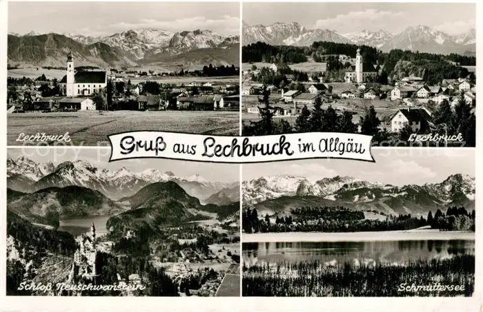 AK / Ansichtskarte Lechbruck_See Panoramen Kirche Schloss Neuschwanstein Schmuttersee Lechbruck See