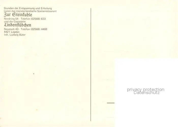 Legden Restaurant Zur Steinkuhle mit Gaststaette Lindenstuebchen Legden postalisch nicht gelaufen nach 1965 Erhaltung siehe scans [WerneD78] WernPID7