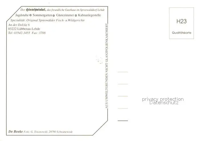 Lehde Gasthaus Hirschwinkel Gaststube Terrasse Lehde postalisch nicht gelaufen nach 1965 Erhaltung siehe scans [WerneD78] WernPID7