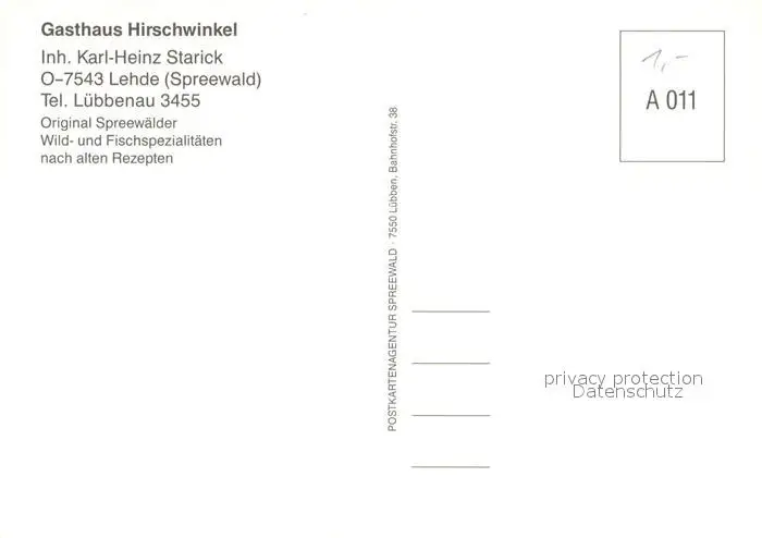 Lehde Gasthaus Hirschwinkel Wasserstrasse Lehde postalisch nicht gelaufen nach 1965 Erhaltung siehe scans [FriedD77] Frierer