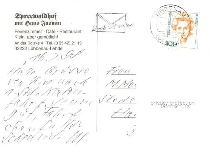 Lehde Spreewaldhof Haus Jasmin Lehde postalisch gelaufen 1998 Erhaltung siehe scans [LiesaD40] LiesID40