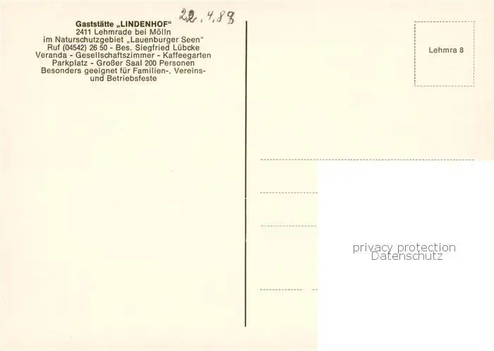 Lehmrade Gaststaette Lindenhof Gastraum Landschaftspanorama Lehmrade postalisch nicht gelaufen 1989 Erhaltung siehe scans [FriedD77] Frierer