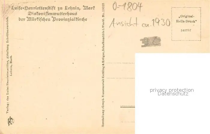 Lehnin Luise Henriettenstift zu Lehnin Diakonissenmutterhaus der Maerkischen Provinzialkirche Lehnin postalisch nicht gelaufen ca. 1930 Erhaltung siehe scans [FriedD77] Frierer
