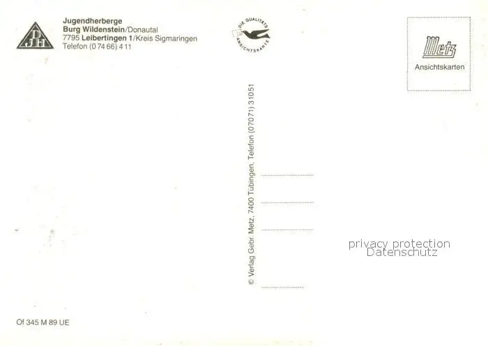 Leibertingen Jugendherberge Burg Wildenstein Donautal Leibertingen postalisch nicht gelaufen nach 1965 Erhaltung siehe scans [LiesaD40] LiesID40