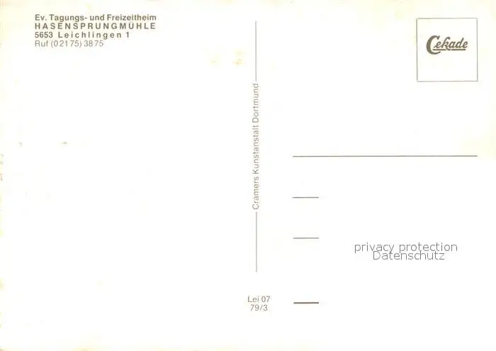 Leichlingen_Rheinland Ev Tagungs und Freizeitheim Hasensprungmuehle Leichlingen_Rheinland postalisch nicht gelaufen nach 1965 Erhaltung siehe scans [WerneD78] WernPID7
