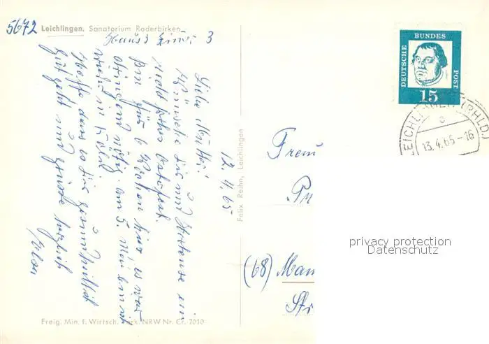 Leichlingen_Rheinland Sanatorium Roderbirken Fliegeraufnahme Leichlingen_Rheinland postalisch gelaufen 1965 Erhaltung siehe scans [FriedD77] Frierer