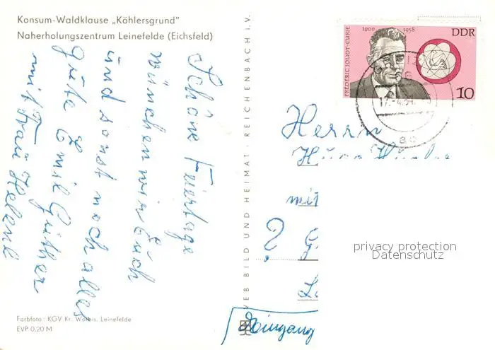 Leinefelde Waldklause K?hlersgrund Leinefelde postalisch gelaufen nach 1965 Erhaltung siehe scans [PaolaD17] PaolPID1