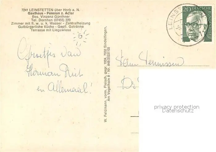 Leinstetten Gasthaus Pension zum Adler Panorama Gastraeume Brunnen Leinstetten postalisch gelaufen 1971 Erhaltung siehe scans [WerneD78] WernPID7