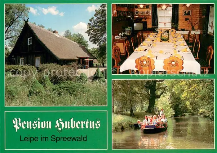 AK / Ansichtskarte Leipe Pension Hubertus Festtafel Kahnfahrt Wasserstrasse Leipe