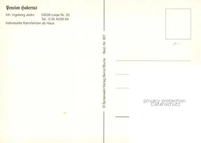 Leipe Pension Hubertus Festtafel Kahnfahrt Wasserstrasse Leipe postalisch nicht gelaufen nach 1965 Erhaltung siehe scans [FriedD77] Frierer