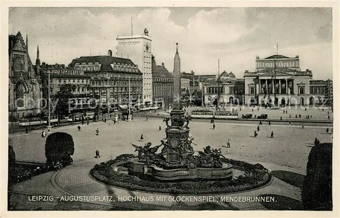 Leipzig Augustusplatz Hochhaus Glockenspiel Mendebrunnen Leipzig postalisch gelaufen 1933 Erhaltung siehe scans [WerneD78] WernPID7