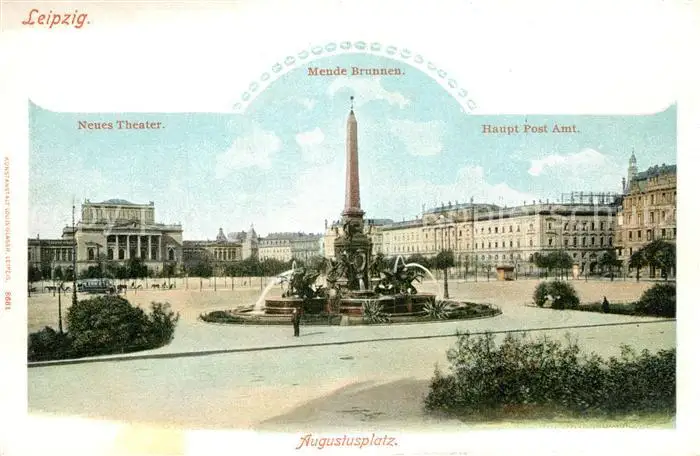 Leipzig Augustusplatz Neues Theater Meude Brunnen Hauptpostamt Leipzig postalisch nicht gelaufen bis 1920 Erhaltung siehe scans [WerneD78] WernPID7