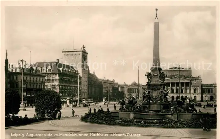 Leipzig Augustusplatz mit Mendebrunnen Hochhaus und Neuem Theater Leipzig postalisch nicht gelaufen 1921-1965 Erhaltung siehe scans [WerneD78] WernPID7