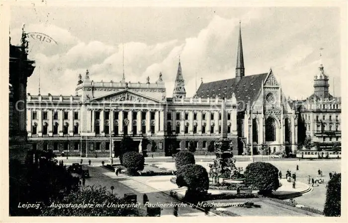 AK / Ansichtskarte Leipzig Augustusplatz mit Universitaet Paulinerkirche und Mendebrunnen Leipzig