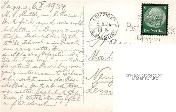 Leipzig Augustusplatz mit Universitaet Paulinerkirche und Mendebrunnen Leipzig postalisch gelaufen 1934 Erhaltung siehe scans [WerneD78] WernPID7