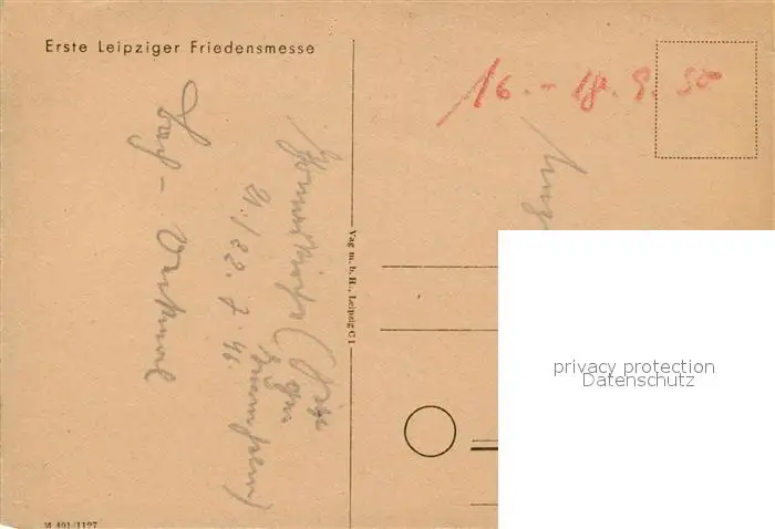 Leipzig Erste Leipziger Friedensmesse Zeichnung Bach Leipzig postalisch nicht gelaufen 1946 Erhaltung siehe scans [KathaD81] Kathoren