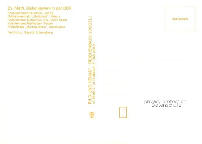 Leipzig Ev.-Meth. Diakoniewerk in der DDR Krankenhaeuser Diakonissenheime Leipzig postalisch nicht gelaufen 1988 Erhaltung siehe scans [FriedD77] Frierer