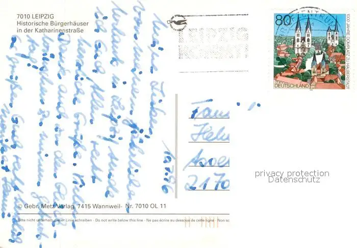 Leipzig Historische Buergerhaeuser Katharinenstrasse Blumenbeet Leipzig postalisch gelaufen 1996 Erhaltung siehe scans [FriedD77] Frierer