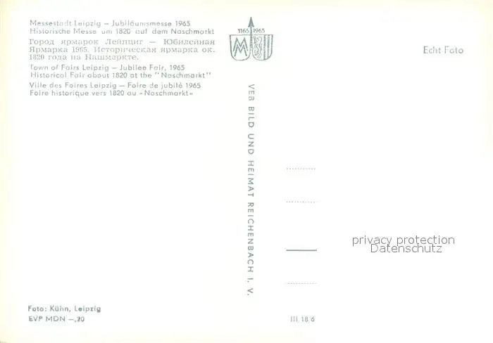 Leipzig Jubilaeumsmesse 1965 auf dem Naschmarkt Leipzig postalisch nicht gelaufen 1965 Erhaltung siehe scans [LiesaD40] LiesID40