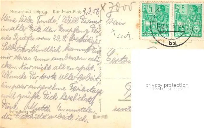 Leipzig Karl Marx Platz Leipzig postalisch gelaufen 1956 Erhaltung siehe scans [WerneD78] WernPID7