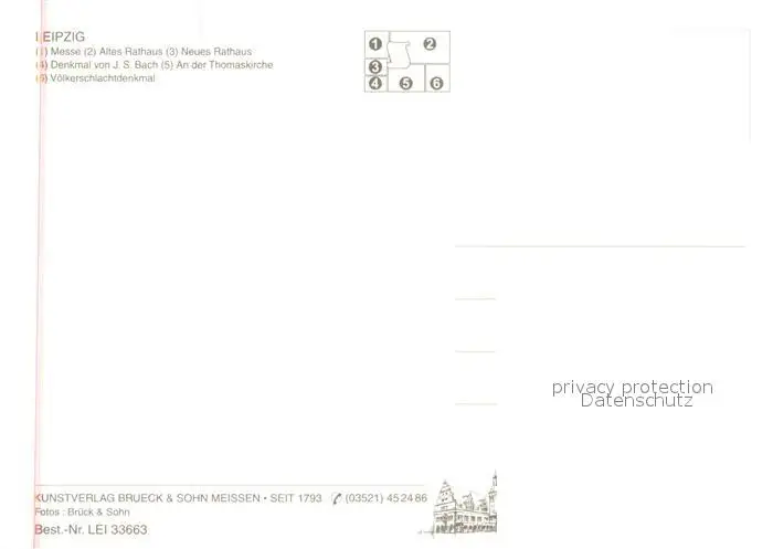 Leipzig Messe Altes und neues Rathaus Denkmal J S Bach Thomaskirche Voelkerschlachtdenkmal Leipzig postalisch nicht gelaufen nach 1965 Erhaltung siehe scans [WerneD78] WernPID7