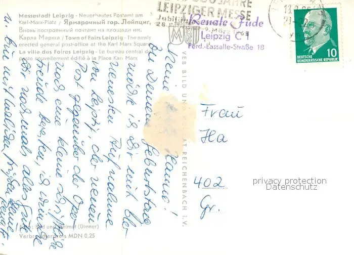 Leipzig Postamt Karl-Marx-Platz Leipzig postalisch gelaufen 1965 Erhaltung siehe scans [PaolaD17] PaolPID1