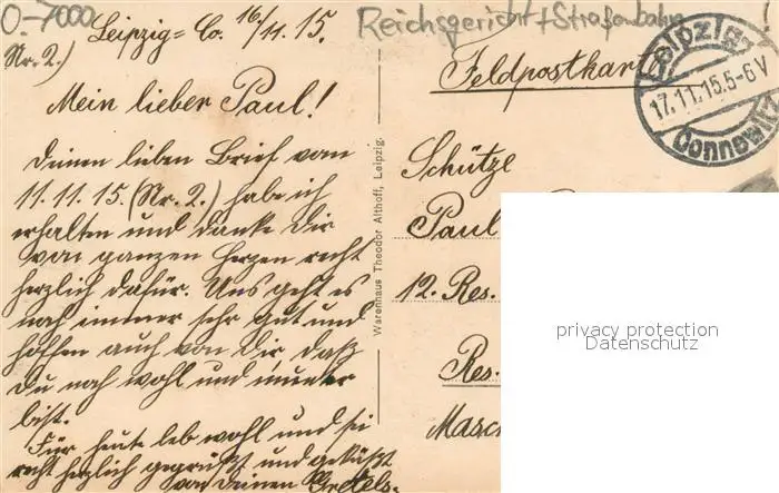 Leipzig Reichsgericht Strassenbahn Feldpost Leipzig postalisch gelaufen 1915 Erhaltung siehe scans [FriedD77] Frierer