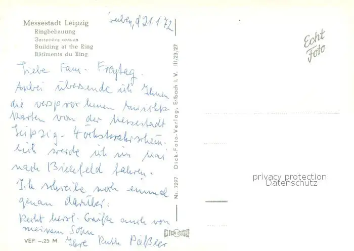 Leipzig Ringbebauung Leipzig postalisch nicht gelaufen 1972 Erhaltung siehe scans [LiesaD40] LiesID40