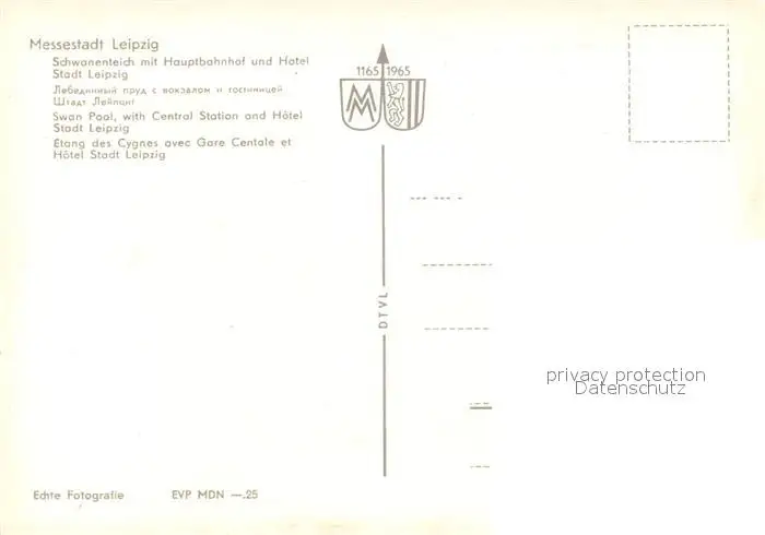 Leipzig Schwanenteich Hauptbahnhof Hotel Stadt Leipzig Messestadt Leipzig postalisch nicht gelaufen 1965 Erhaltung siehe scans [FriedD77] Frierer