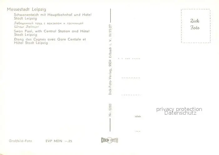Leipzig Schwanenteich mit Hauptbahnhof und Hotel Stadt Leipzig Leipzig postalisch nicht gelaufen nach 1965 Erhaltung siehe scans [WerneD78] WernPID7