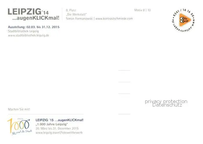 Leipzig Stadtbibliothek Ausstellung augenKlickmal Die Werkstatt Leipzig postalisch nicht gelaufen 2015 Erhaltung siehe scans [FriedD77] Frierer