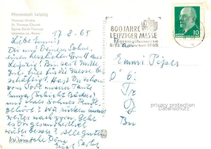 Leipzig Thomas-Kirche Leipzig postalisch gelaufen 1965 Erhaltung siehe scans [NatalD47] NataID47