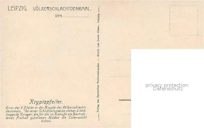 Leipzig Voelkerschlachtdenkmal Kryptapfeiler Leipzig postalisch nicht gelaufen 1921-1965 Erhaltung siehe scans [KathaD81] Kathoren