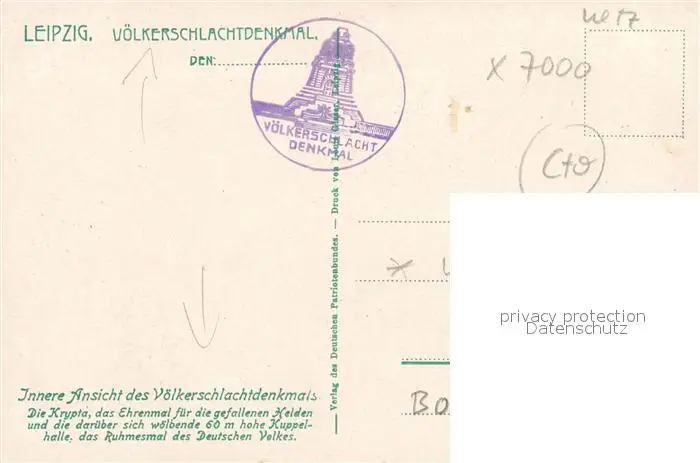 Leipzig Voelkerschlachtdenkmal Leipzig postalisch nicht gelaufen bis 1920 Erhaltung siehe scans [WerneD78] WernPID7