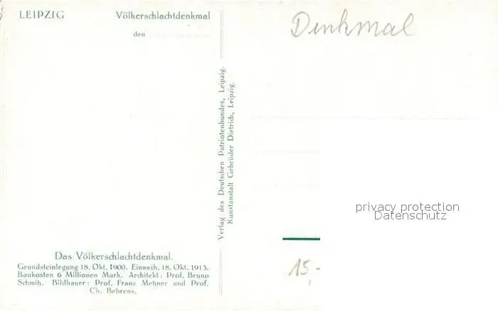 Leipzig Voelkerschlachtdenkmal Leipzig postalisch nicht gelaufen bis 1920 Erhaltung siehe scans [FriedD77] Frierer