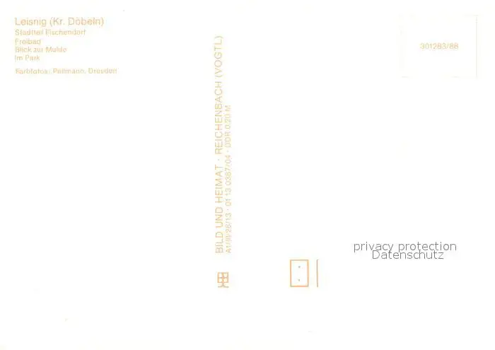 Leisnig Stadtteil Fischendorf Freibad Blick zur Mulde Park Leisnig postalisch nicht gelaufen 1988 Erhaltung siehe scans [FriedD77] Frierer