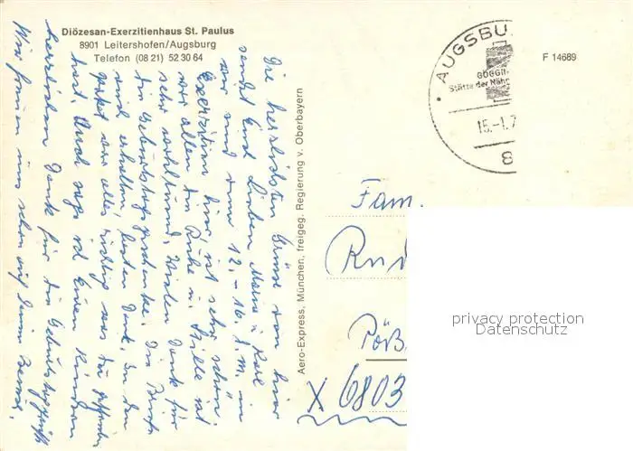 Leitershofen Dioezesan Exerzitienhaus St. Paulus Fliegeraufnahme Leitershofen postalisch gelaufen nach 1965 Erhaltung siehe scans [FriedD77] Frierer