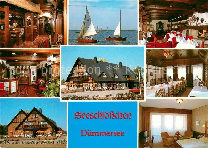 AK / Ansichtskarte Lembruch Hotel Restaurant Seeschloesschen Gastraeume Zimmer Segelschiffe Lembruch