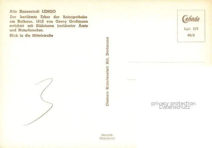 Lemgo Hansestadt Ratsapothek Erker Rathaus Lemgo postalisch nicht gelaufen nach 1965 Erhaltung siehe scans [LiesaD40] LiesID40