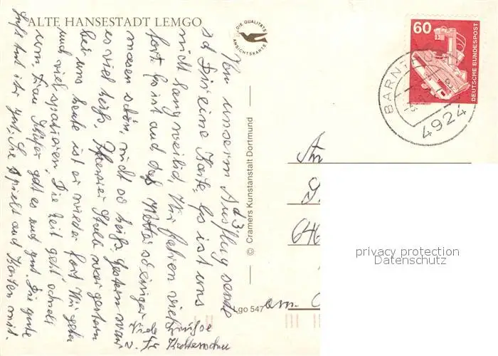 Lemgo Ostertor Wall Mittelstrasse oelmuehle Brake Alte Abtei Hof Kersenbrock Diebesgasse Lemgo postalisch gelaufen nach 1965 Erhaltung siehe scans [WerneD78] WernPID7