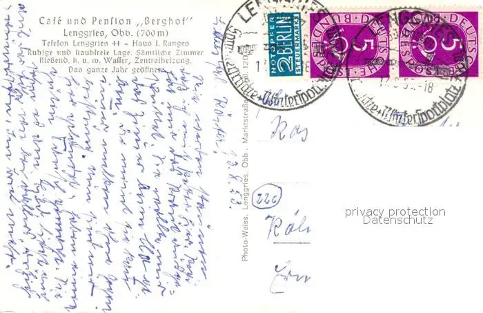 Lenggries Kategorie Alte Ansichtskarten Postkarten bx54297 Lenggries Cafe Berghof Lenggries postalisch gelaufen 1953 Erhaltung siehe scans [NatalD47]