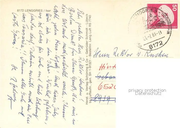 Lenggries Fliegeraufnahme Lenggries postalisch gelaufen 1981 Erhaltung siehe scans [FriedD77] Frierer