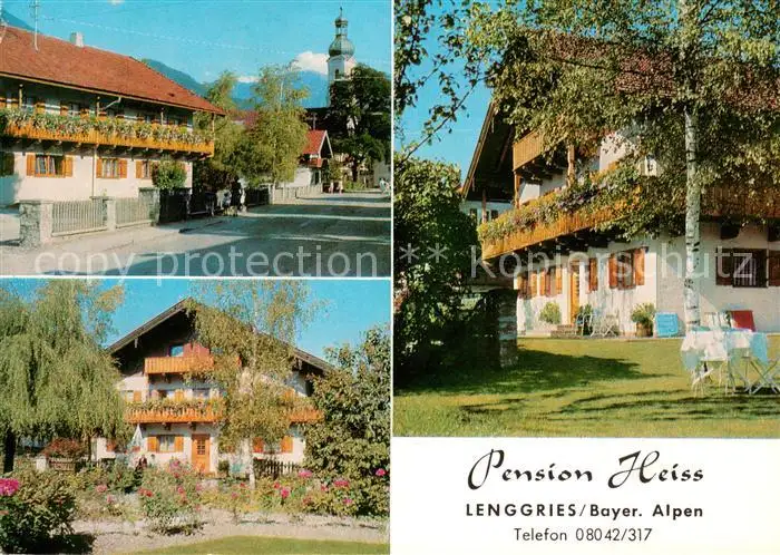 AK / Ansichtskarte Lenggries Gaestehaus Pension Heiss Ortsmotiv mit Kirche Bayerische Alpen Lenggries